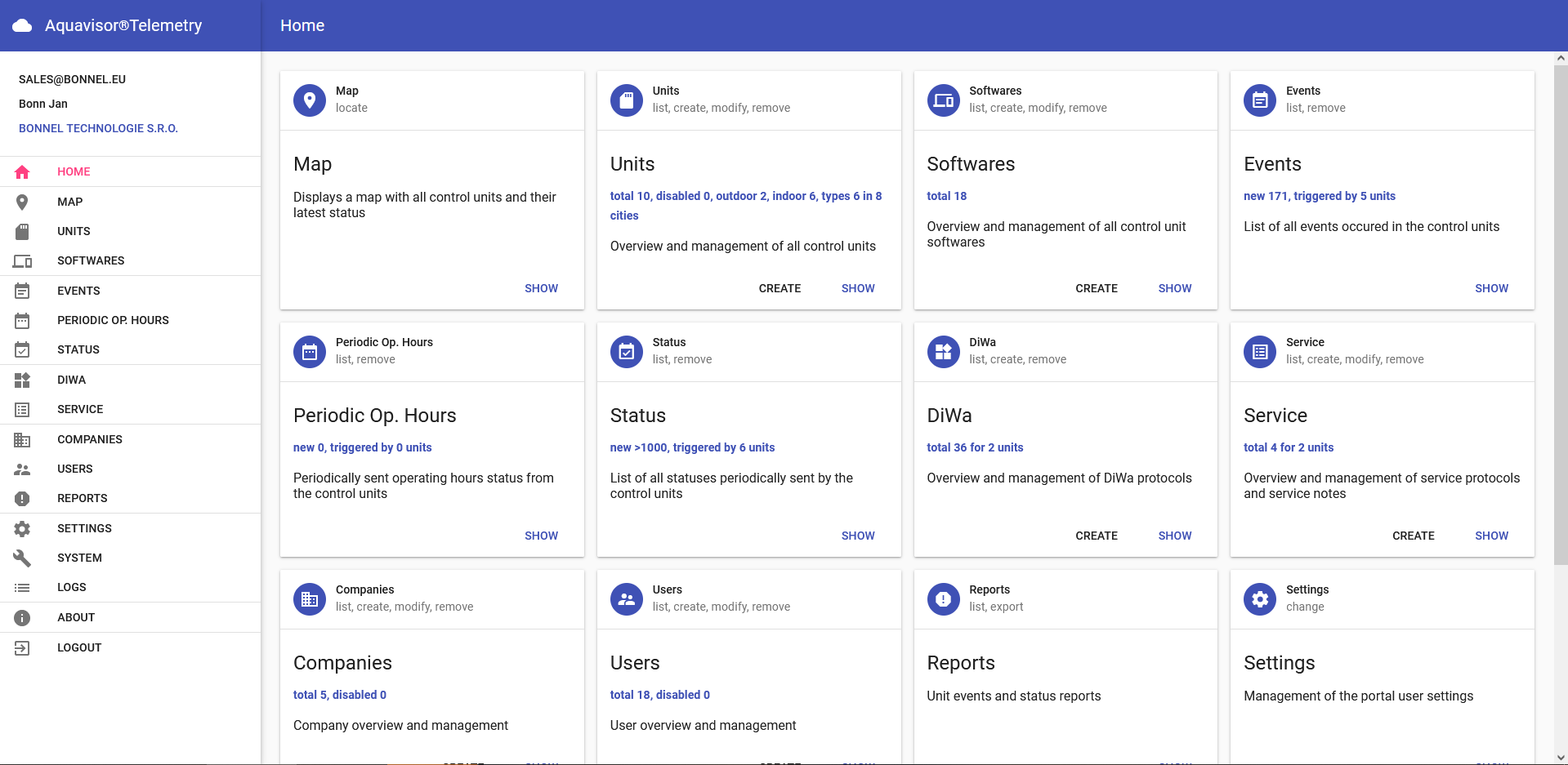 Aquavisor cloud-based Telemetry